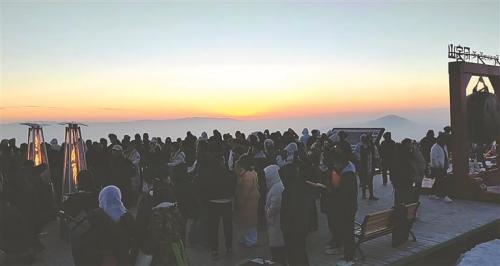 在同宝山顶穿羽绒服看日出、吃火锅、放烟花,成为年轻人冬日欢度周末的新方式。张进娥 摄