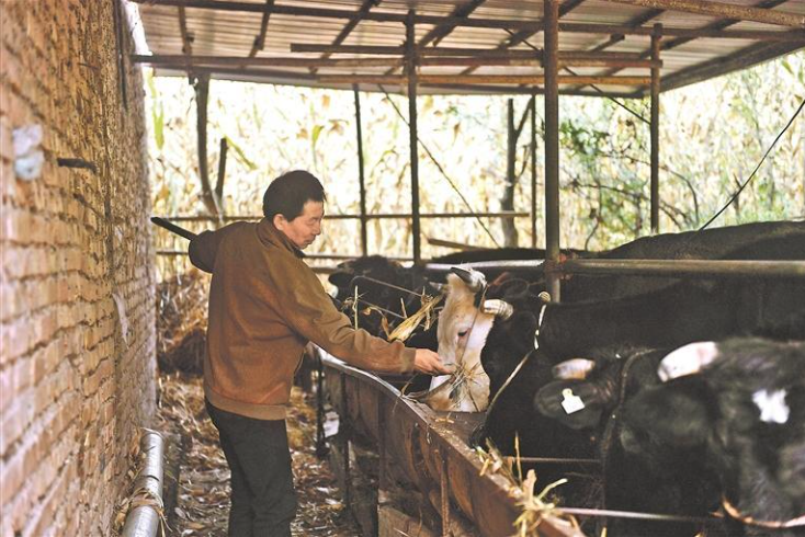 那3头牛,是他家被列为动态监测户后,用政府发放的产业到户资金买来的,刚养了4个月。如今村里还没有集中养殖场,他就把牛寄养在不远处的金田村养殖区,每天骑着小三轮来回跑。“四五分钟就到,不麻烦!”