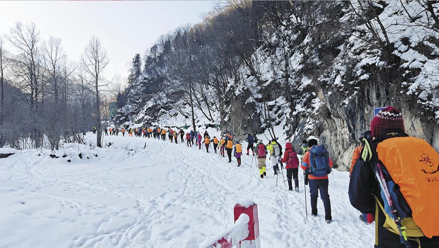 走进北龙山景区,悬崖冰瀑悬垂山间,雾凇晶莹缀满枝头,漫步“寒雾纪”主题漫游道,宛如步入冰雪幻境。除了自然奇观,景区还推出“雾凇许愿林”“北龙山冬韵”摄影大赛,组织开展雪地徒步、机车驰骋等体验项目,让冰雪旅游超越观光,走向沉浸式体验。
