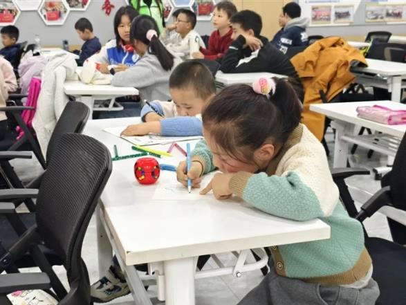 “画笔要拿正,涂色要均匀……”1月30日下午,志愿者的声音温柔又有耐心,他们正教孩子们如何在画纸上勾勒。原本空白的画纸,渐渐浮现出红色灯笼的轮廓。彩笔划过画纸的沙沙声、孩子们叽叽喳喳的讨论声、偶尔传来的赞叹声,交织在一起,成了冬日里最动人的新春序曲。