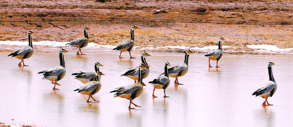 初夏的果洛藏族自治州玛多县,大大小小的湖泊如夜空中的星宿在闪烁,扎陵湖、鄂陵湖湖水湛蓝,波光粼粼。草原上藏野驴欢快奔跑,一群群斑头雁在湖畔草地间悠闲觅食。