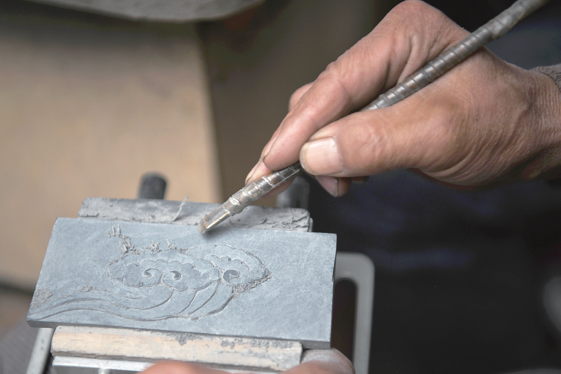 走进牧民更登家,他正在院落一侧的独立工作间带着两名村民刻石,简陋的工作间不大,但各型刻刀、角磨机等工具器械俱全。更登是省级民间工艺师和州级非遗传承人,这间“陋室”更是走出了100多位牧民雕刻师。除了“定点培训”,他也时常“送教上门”。