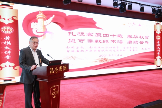 3月4日,青海劳模大讲堂在海东市河湟新区青海省物产集团保税物流园区开讲,青海省总工会邀请全国五一劳动奖章获得者、中国邮政集团公司格尔木市分公司“鸿雁天路”投递员葛军,全国劳模、青海省物产集团公司党委书记、董事长王玉辉,共同讲述立足岗位、建功立业的先进事迹。