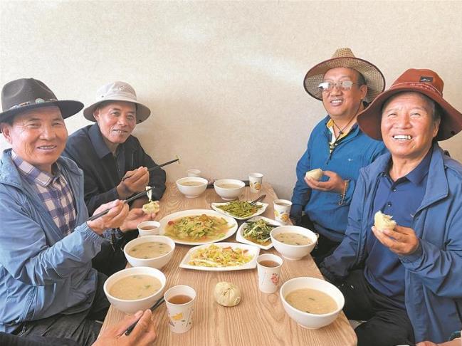 藏族老人夏吾才让刚喝完一碗麦仁粥,又盛了一碗。他边喝边忍不住感叹:“我儿女不在身边,自己做饭麻烦得很,现在每天能和老伙计们一起吃热乎饭,心里别提多舒坦了!”说罢,他放下筷子,抹了抹嘴角,脸上满是满足。