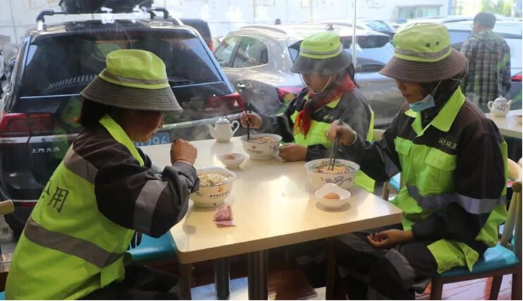 7月4日,为落实落细关于工会组织关心户外劳动者相关要求,切实解决环卫职工现实问题,在青海省总工会和西宁市总工会的大力支持下,西宁市环卫工人“暖心早餐”项目率先在西宁市城中区启动试点,城中区现有的764名环卫职工吃到“暖心早餐”,在全社会营造了“关注环境卫生、关爱环卫工人、尊重劳动成果”的浓厚氛围。