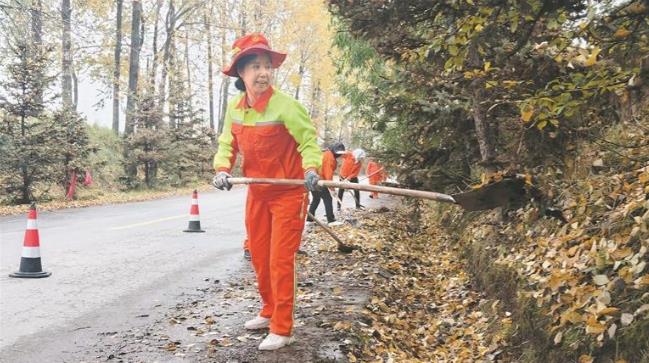 10月10日清晨,秋风裹着寒意掠过西宁市湟中区的乡村公路,路边的杨树叶打着旋儿落在路面。蔡守清握着铁锹的右手微微用力,铁铲齿插进落叶与泥土的缝隙,顺势一扬,落叶便簌簌落进身旁的垃圾袋里。她握着铁锹把的手上老茧嵌着深浅不一的纹路,每一道痕迹都是岁月刻下的“养护印记”。