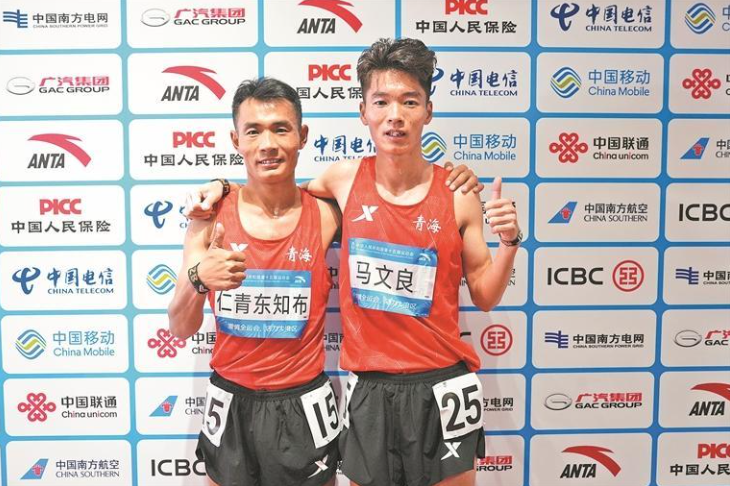 在混采区,马文良看着队友仁青东知布激动地说:“我师兄是上届全运会的马拉松冠军,我要向他看齐。今天,我特别感谢他,是他‘牺牲’了自己为我争取了更多发挥的空间,这块奖牌的光芒是属于我们这个团队的。”听马文良这么一说,本就比较腼腆的仁青东知布有点不好意思:“他真的很优秀,下一个四年,我们还要一起努力,一起加油。”采访结束时,他们自豪地说:“我们的家乡是青海省海北藏族自治州,我们都是苏伟教练的学生。”
