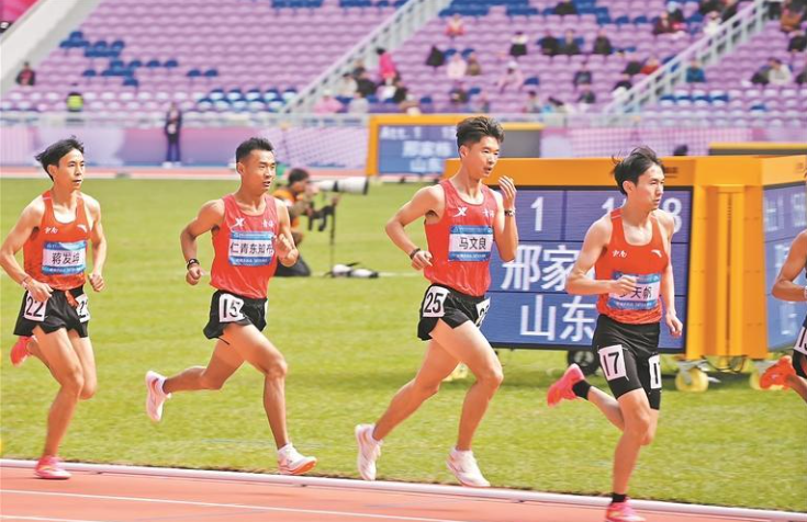 比赛还剩六圈时进入白热化,青海队马文良、云南队蒋发坤、辽宁队于水庆、山东队唐浩然展开奖牌争夺战。此时,全场观众的热情进一步被点燃,看台上各队的助威声此起彼伏。运动员们尽管体能已经接近极限,但在一声声“加油”的感染下,大家都咬紧牙关奋力向前。