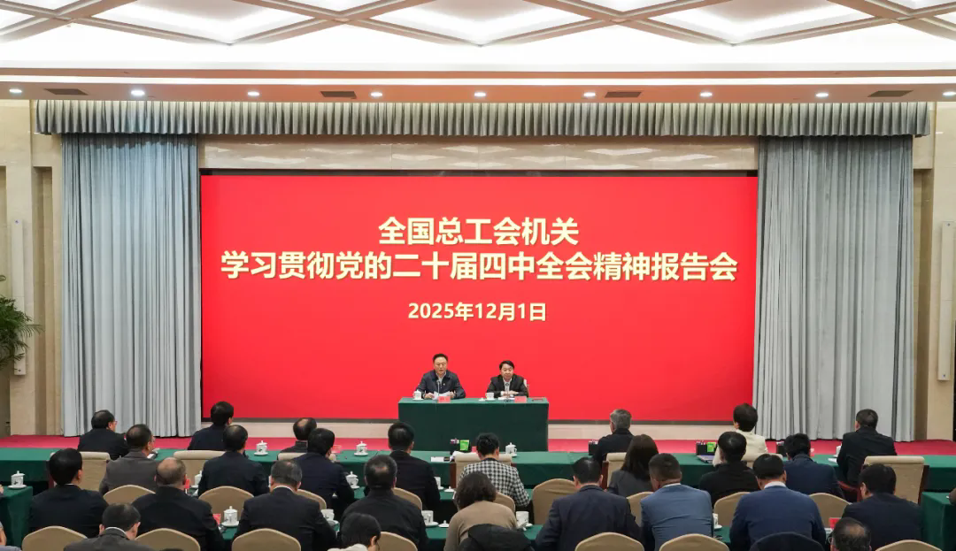 全国总工会机关12月1日举办学习贯彻党的二十届四中全会精神报告会暨2025年第四场工会大讲堂,深入学习贯彻党的二十届四中全会精神,进一步推动学习宣传贯彻工作走深走实。中央宣讲团成员,国家市场监督管理总局党组书记、局长罗文作宣讲报告。全总党组书记、副主席、书记处第一书记徐留平主持报告会并讲话。