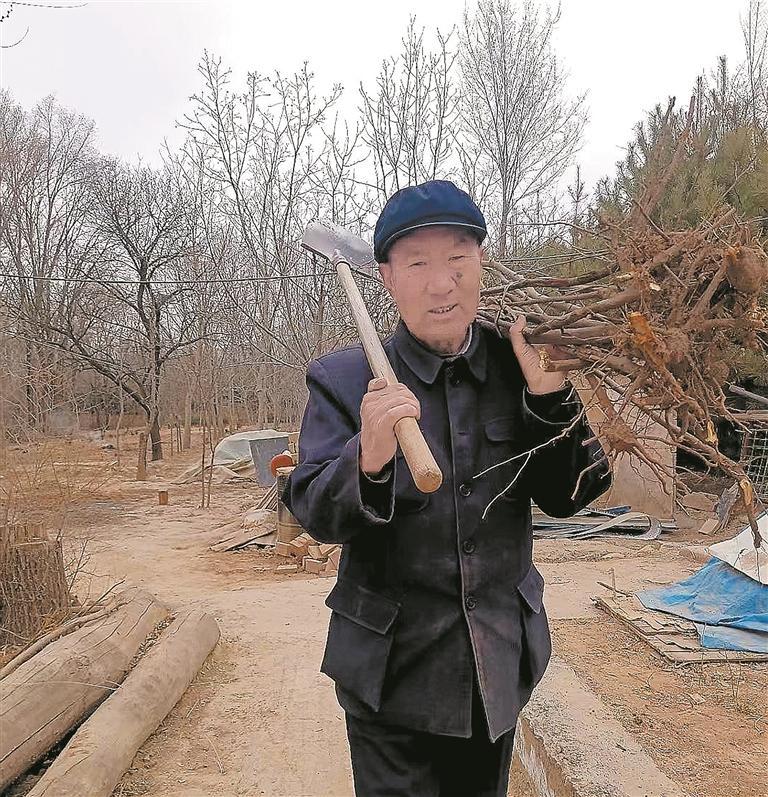 8棵树全活了。1996年春天,马进才又找来十几棵树苗。“等到60岁,我要种活60棵!”从此,春天栽苗,夏天抗旱,秋天修枝,冬天防寒。荒坡每多一分绿意,他脚下的步子就轻快一分。