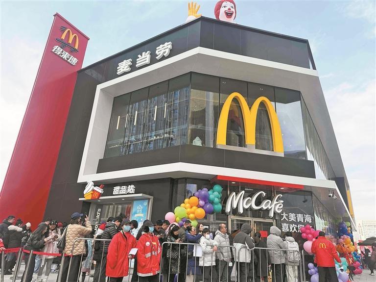 麦当劳青海首店12月21日开业,众多消费者排队等候进店体验,现场洋溢着热闹的消费氛围。