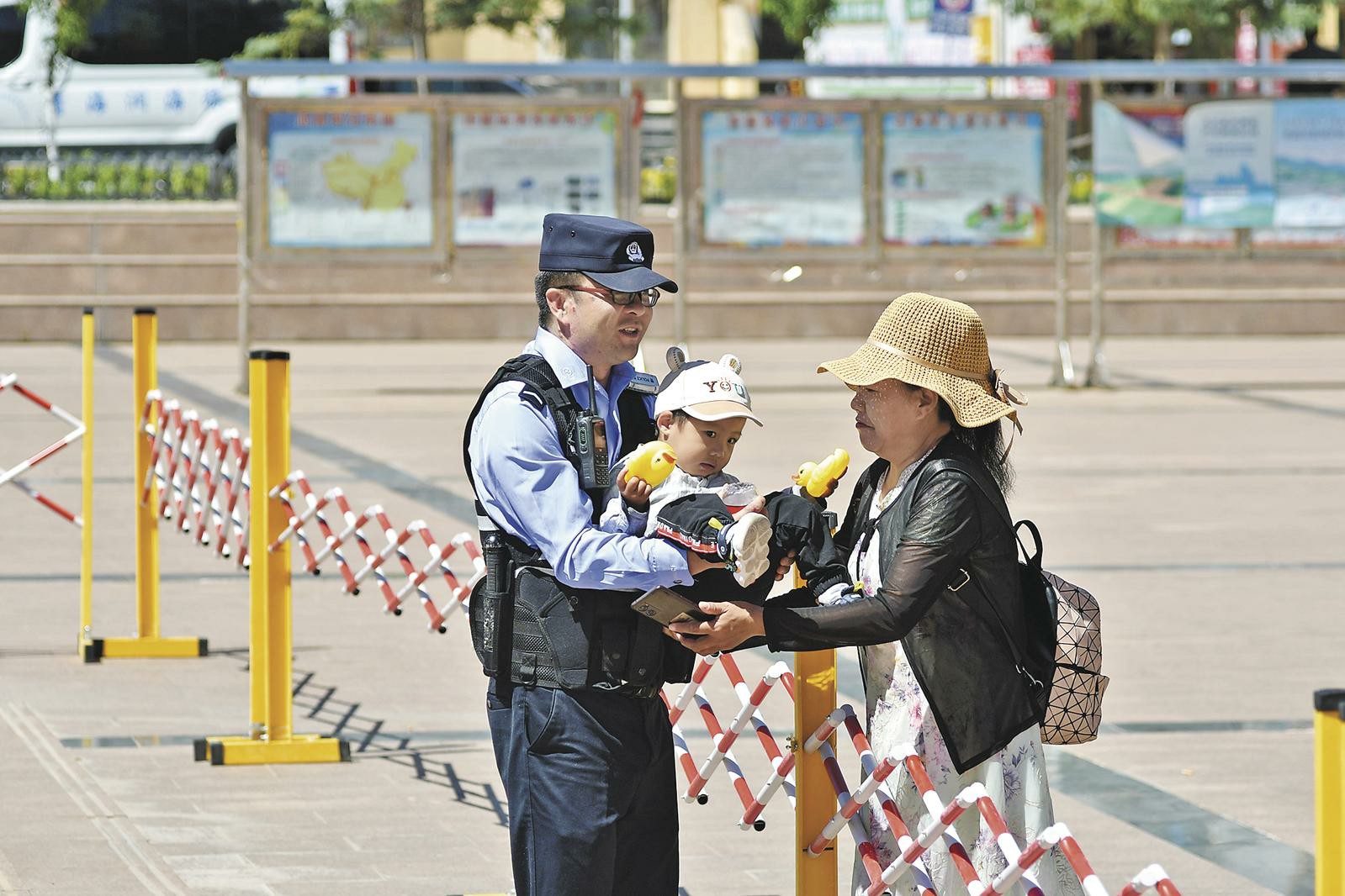 除了深耕普法宣传工作,安保执勤的一线也总能见到马寿义忙碌的身影。2025“中国工商银行杯”第二十四届环大美青海国际公路自行车赛祁连赛段期间,参与人员多、活动范围广,安保任务艰巨繁重,祁连县公安局承担起安保执勤工作。清晨6时,马寿义准时抵达执勤点,细致排查现场安全隐患,引导群众有序观赛。他时而贴心搀扶老奶奶,时而热情为外地游客指路,一旁的同事忍不住和他开玩笑:“寿义,今天你家亲戚来的可真多,把你忙得团团转啊。”马寿义笑着回应:“辅警也是警啊,服务人民群众是我们的本职工作,应该的!应该的!”