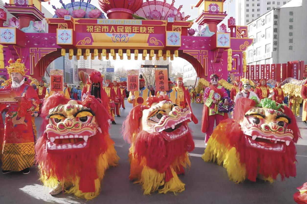 街市上彩灯璀璨、锣鼓喧天,人们在花灯下许下新一年的美好祝愿,在人潮涌动中,感受新年的火热与兴旺。