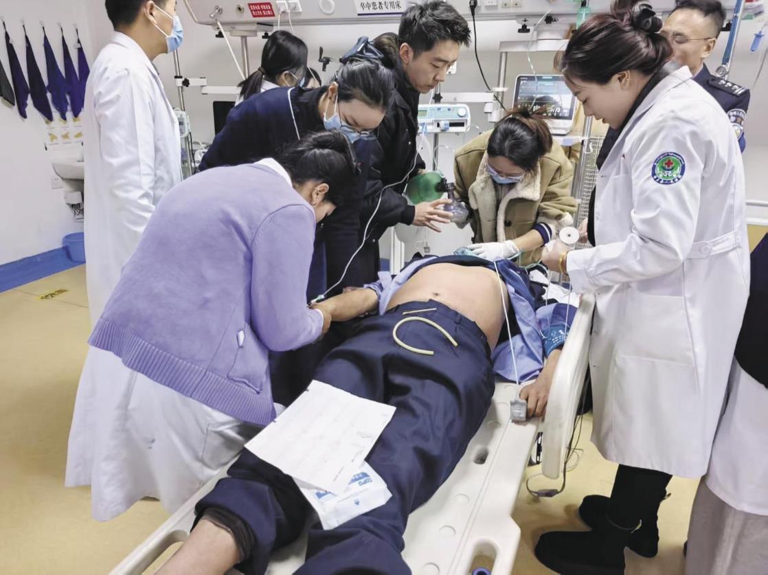 电击除颤的电流声划破寂静,患者心律却未复律。“我来按压!”骨科医生王登峰立刻上前,标准的胸外按压让患者胸廓规律起伏。