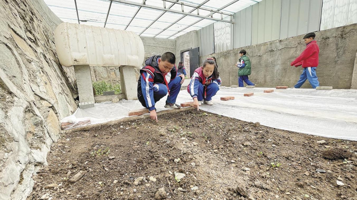 在副校长徐花花看来,学校专门规划出场地,方便让学生开展劳动实践课程。学生参与其中、亲身体验,种植各类蔬菜、农作物、花卉等,从播种、施肥、浇水到管护,每一步都是由学生亲自把关。