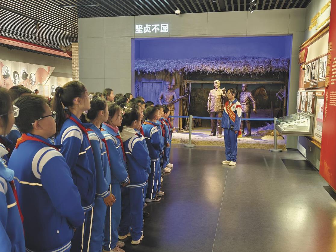 红色基因,在少年童声中代代相传。西宁市中国工农红军西路军纪念馆里,“红领巾讲解员”身着统一服饰,用稚嫩却坚定的声音,讲述西路军战士浴血祁连的英雄故事。自2018年成立志愿宣讲服务队以来,孩子们从革命历史的聆听者转变为讲述者,累计开展宣讲超万场次,公益服务时长6700小时。馆校联动定向招募、专业化礼仪培训、沉浸式现场演练,让红色种子在青少年心中生根发芽。《风雪露营》红色故事、“画”说西路军主题画展、多元化宣讲模式,让静态史料变得有温度,让爱国主义教育可参与、可感知、可传承。