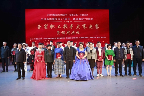 在“五一”国际劳动节来临之际,由省总工会、省委宣传部、省文明办、省文化和旅游厅、团省委、省妇联、青海广播电视台等7部门联合举办的“放歌新时代·建功新青海”庆祝新中国成立70周年、青海解放70周年全省职工歌手大赛决赛暨颁奖典礼4月25日在省文化馆群星剧场落下帷幕。省委常委、省总工会主席马吉孝,省人民政府副省长张黎和大赛主办单位领导陈志忠、高波、常红安、周贤安、冉清、党惠巧、张成强莅临现场观看比赛,并为获奖选手颁奖。